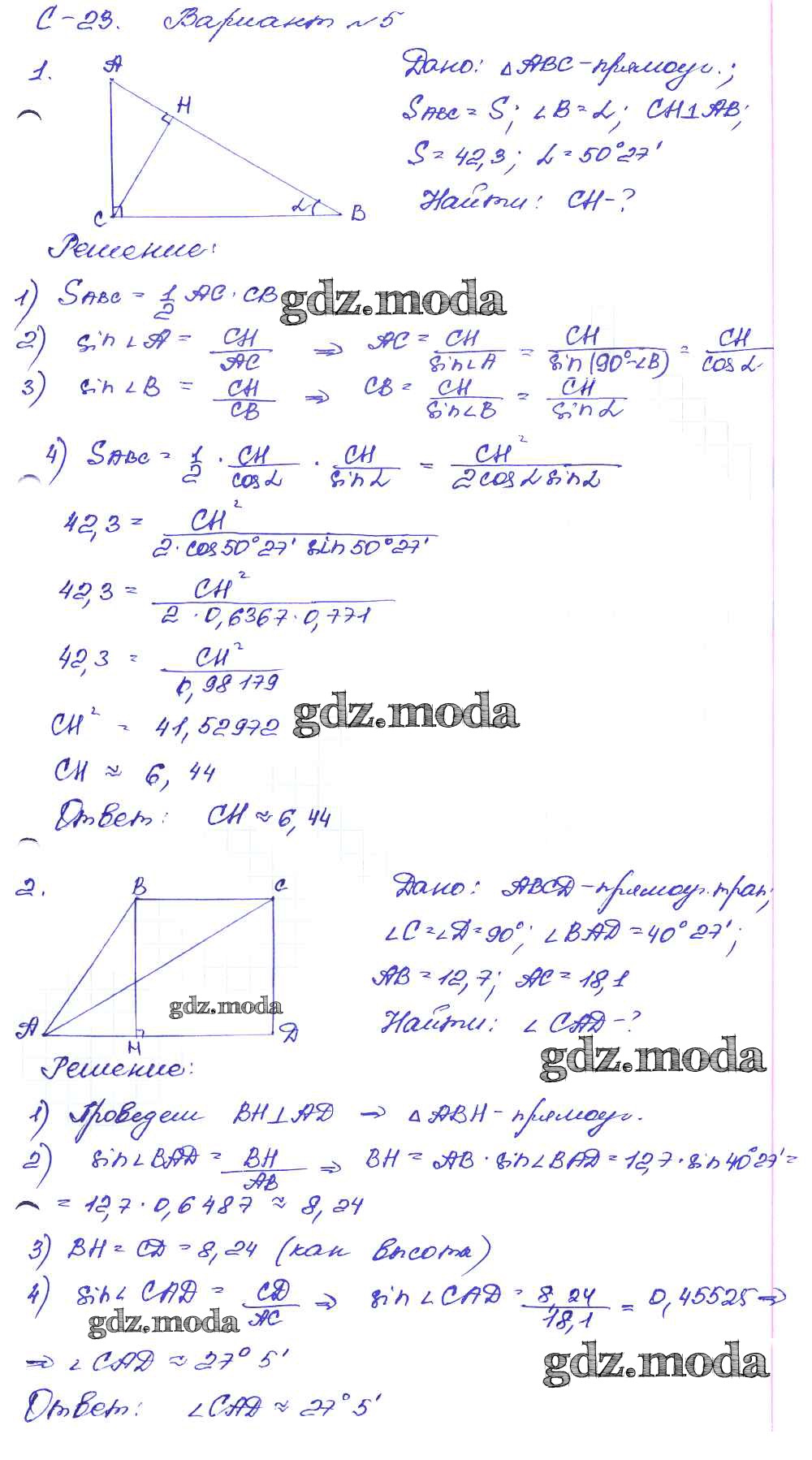 ГДЗ решение к заданию № вариант-5 Геометрия 8 класс Дидактические материалы Зив Б.Г. Просвещение 2016 ФГОС бесплатно на гдз.мода!