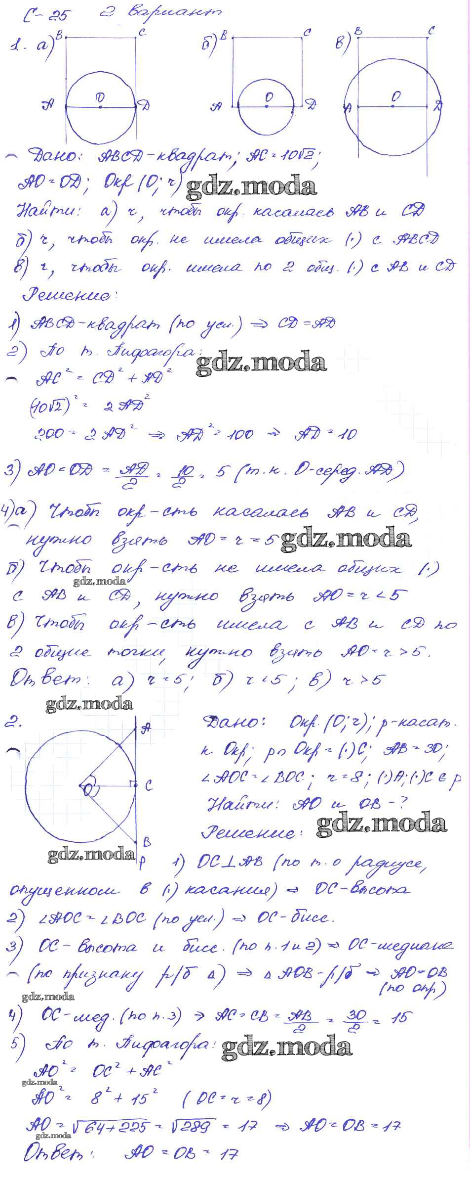 ГДЗ решение к заданию № вариант-2 Геометрия 8 класс Дидактические материалы Зив Б.Г. Просвещение 2016 ФГОС бесплатно на гдз.мода!