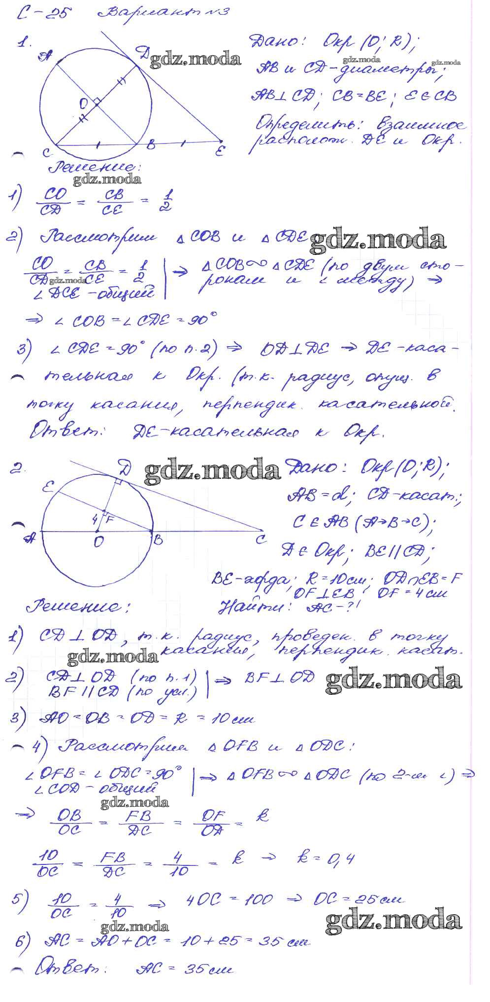 ГДЗ решение к заданию № вариант-3 Геометрия 8 класс Дидактические материалы Зив Б.Г. Просвещение 2016 ФГОС бесплатно на гдз.мода!