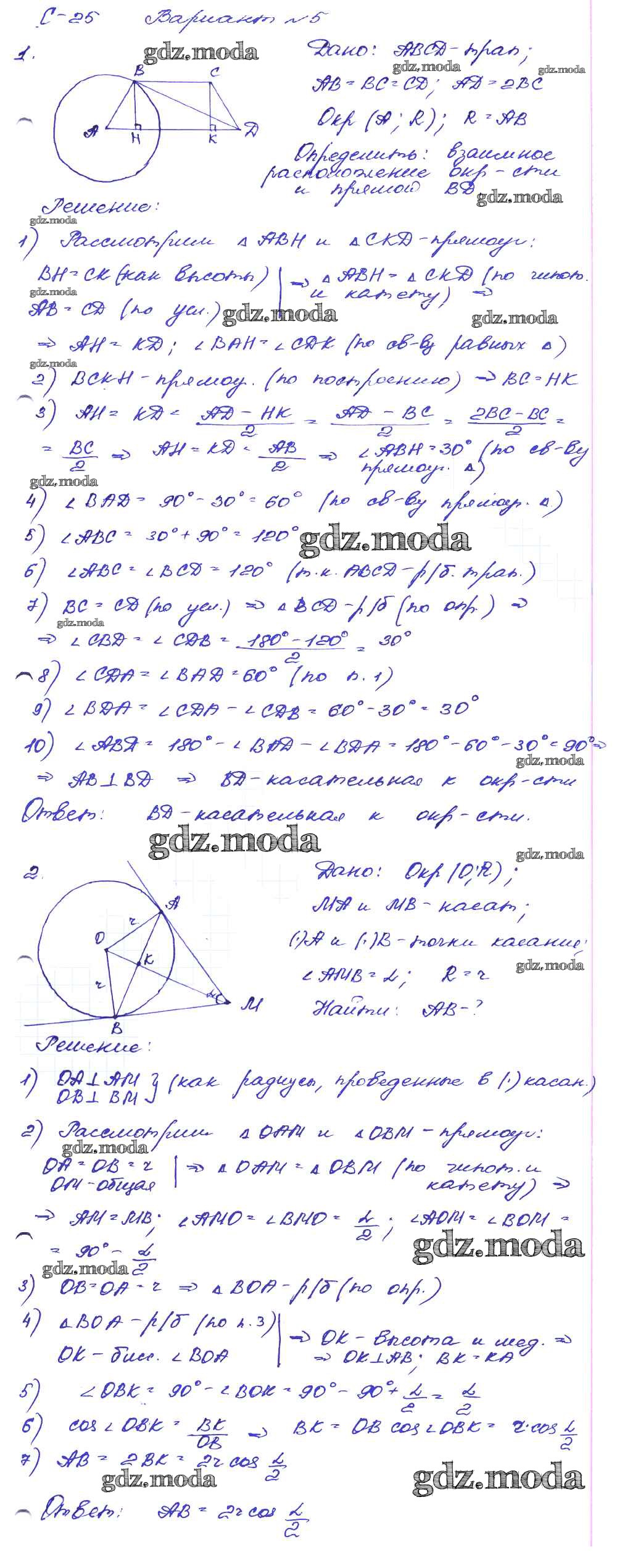 ГДЗ решение к заданию № вариант-5 Геометрия 8 класс Дидактические материалы Зив Б.Г. Просвещение 2016 ФГОС бесплатно на гдз.мода!