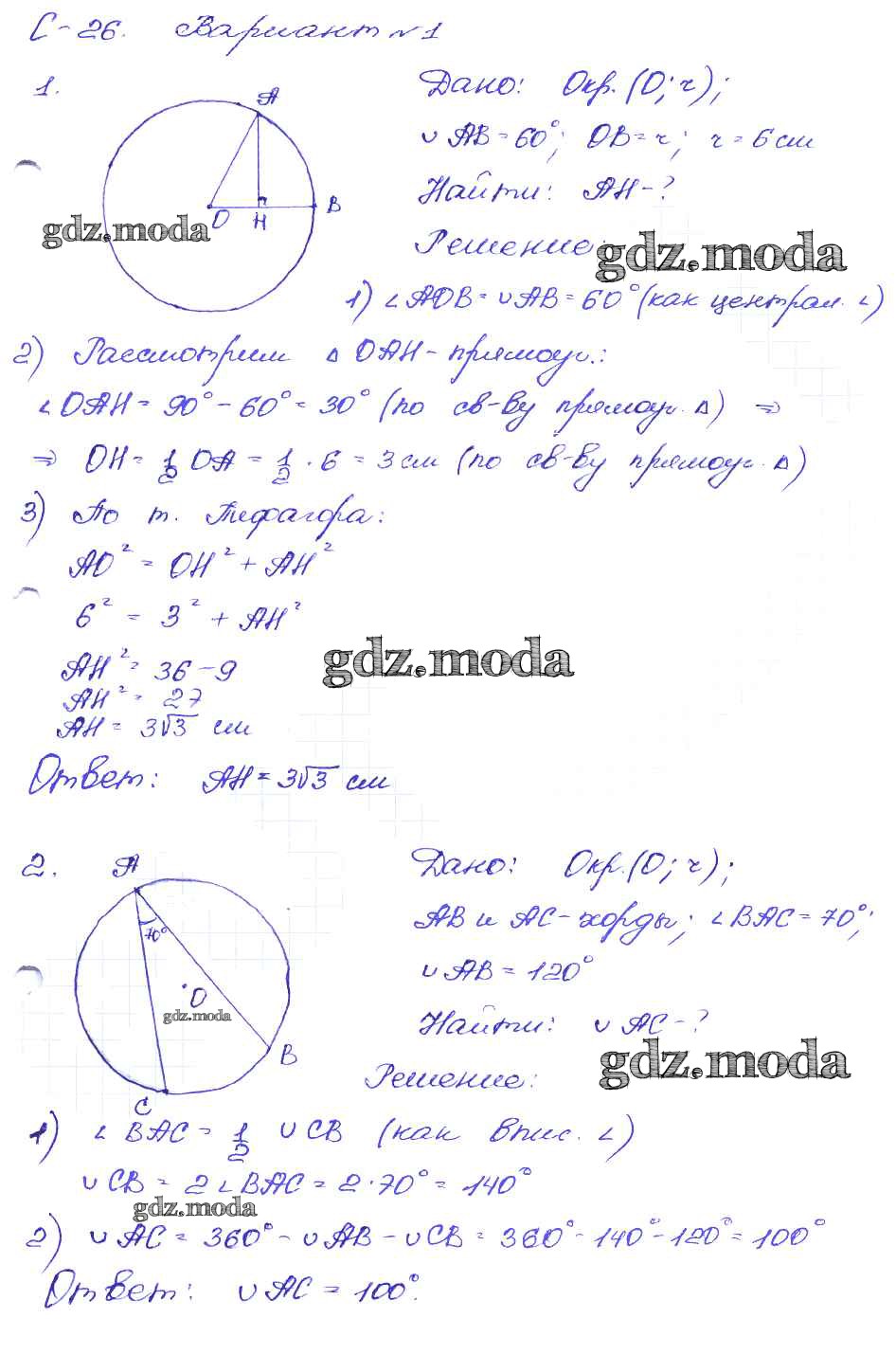 ГДЗ решение к заданию № вариант-1 Геометрия 8 класс Дидактические материалы Зив Б.Г. Просвещение 2016 ФГОС бесплатно на гдз.мода!