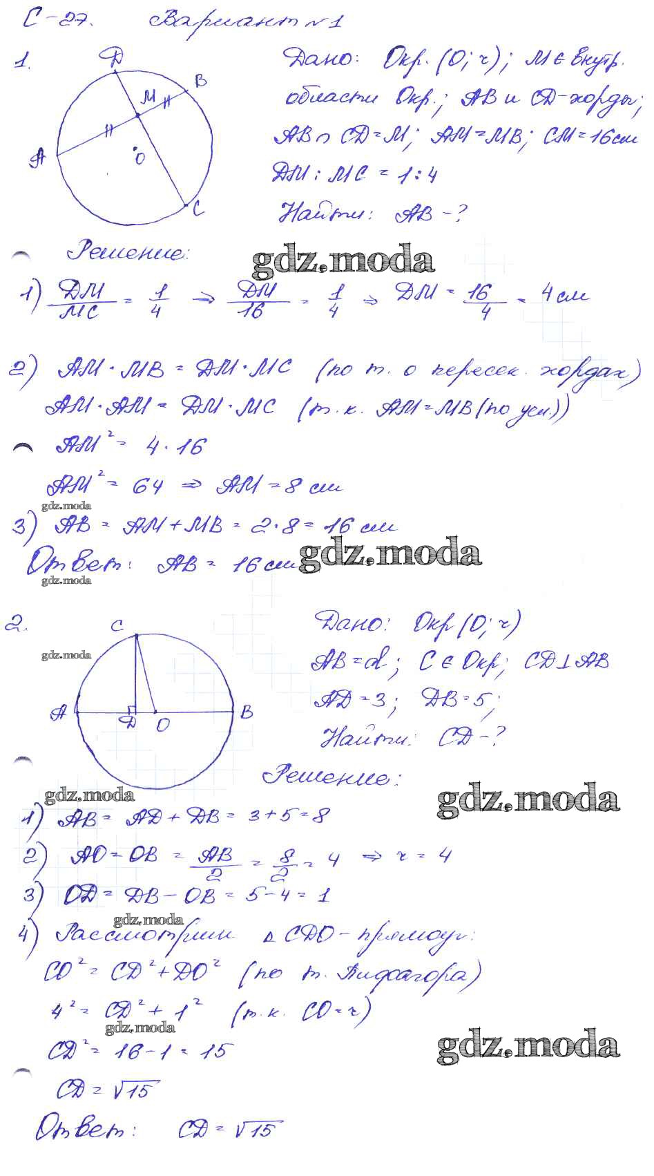 ГДЗ решение к заданию № вариант-1 Геометрия 8 класс Дидактические материалы Зив Б.Г. Просвещение 2016 ФГОС бесплатно на гдз.мода!