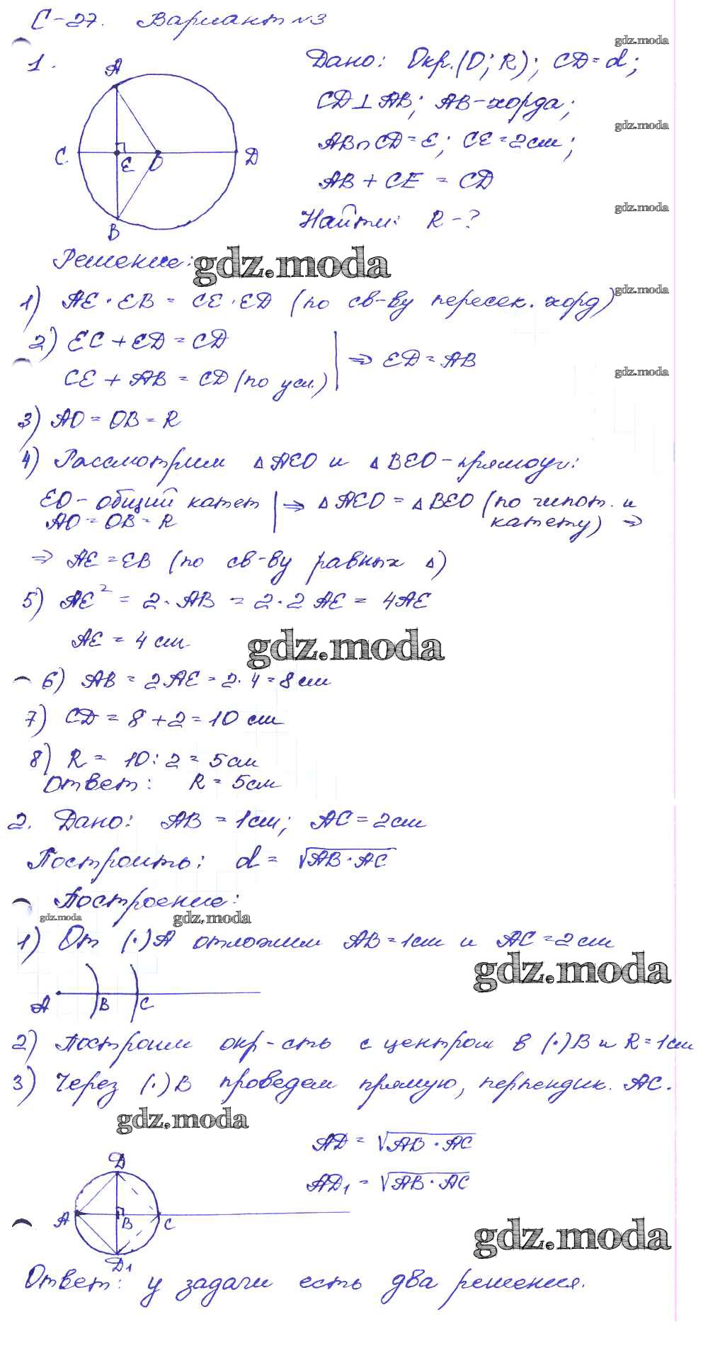 ГДЗ решение к заданию № вариант-3 Геометрия 8 класс Дидактические материалы Зив Б.Г. Просвещение 2016 ФГОС бесплатно на гдз.мода!