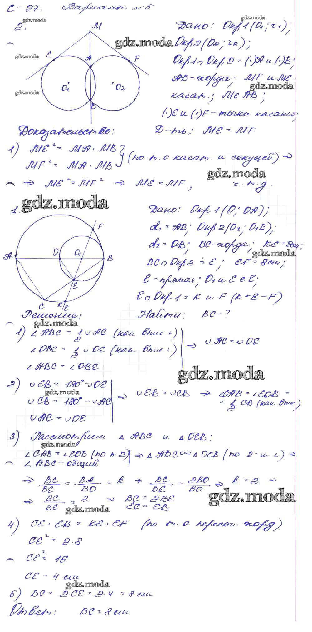 ГДЗ решение к заданию № вариант-5 Геометрия 8 класс Дидактические материалы Зив Б.Г. Просвещение 2016 ФГОС бесплатно на гдз.мода!