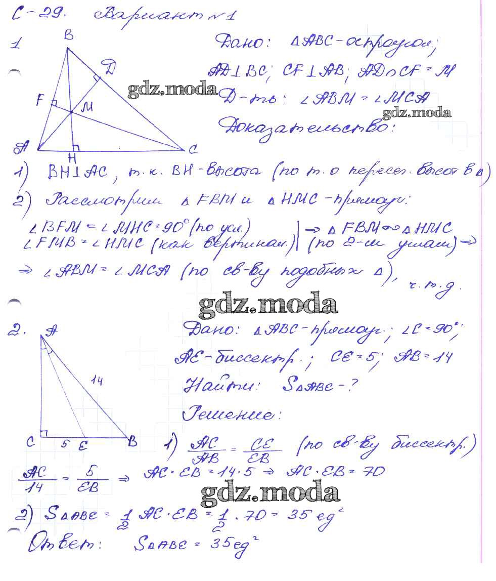 ГДЗ решение к заданию № вариант-1 Геометрия 8 класс Дидактические материалы Зив Б.Г. Просвещение 2016 ФГОС бесплатно на гдз.мода!