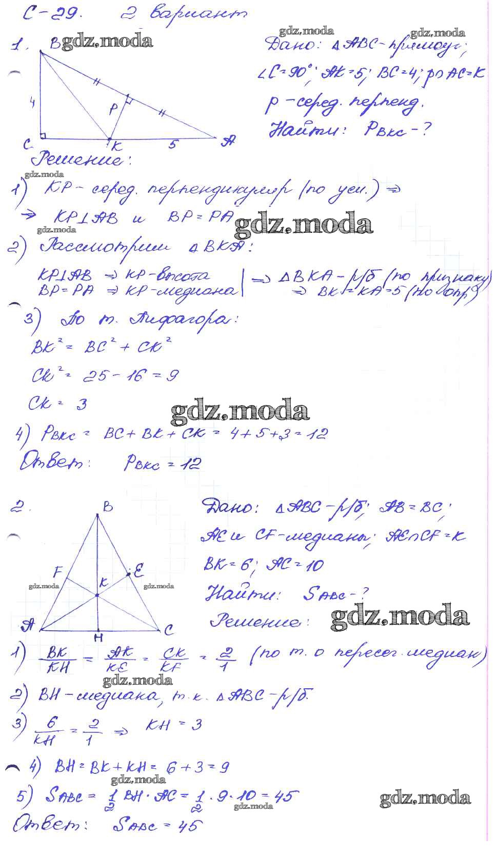 ГДЗ решение к заданию № вариант-2 Геометрия 8 класс Дидактические материалы Зив Б.Г. Просвещение 2016 ФГОС бесплатно на гдз.мода!