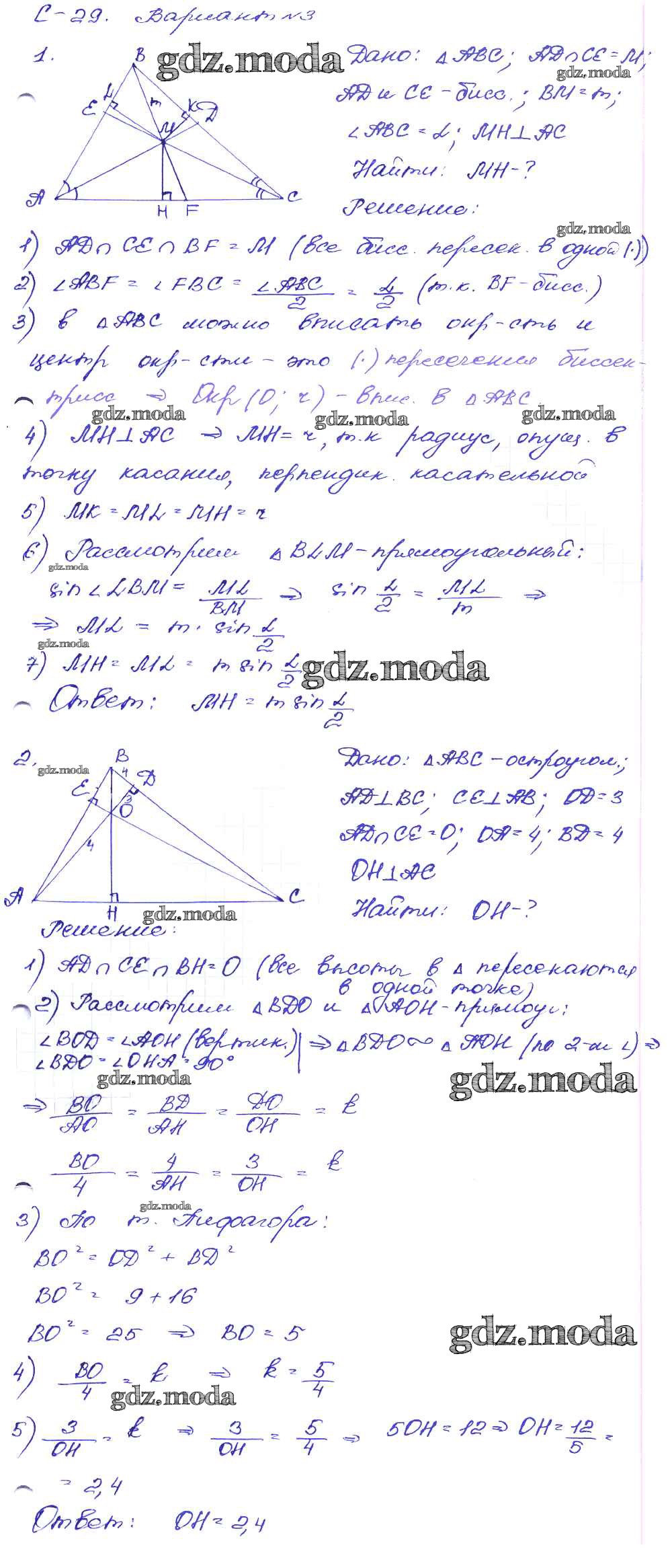 ГДЗ решение к заданию № вариант-3 Геометрия 8 класс Дидактические материалы Зив Б.Г. Просвещение 2016 ФГОС бесплатно на гдз.мода!