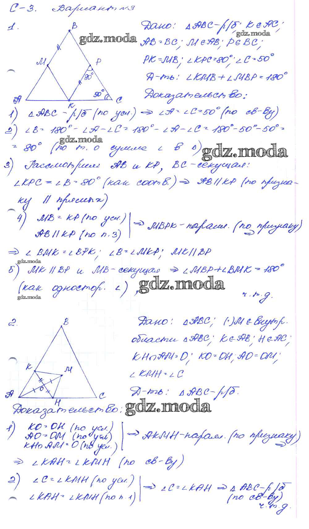 ГДЗ решение к заданию № вариант-3 Геометрия 8 класс Дидактические материалы Зив Б.Г. Просвещение 2016 ФГОС бесплатно на гдз.мода!