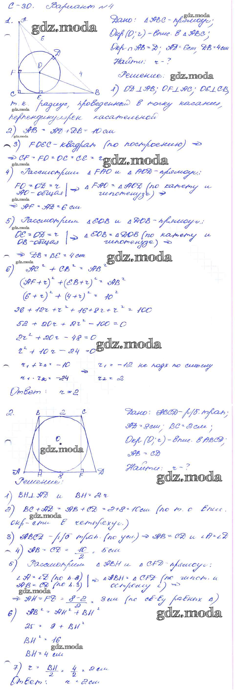 ГДЗ решение к заданию № вариант-4 Геометрия 8 класс Дидактические материалы Зив Б.Г. Просвещение 2016 ФГОС бесплатно на гдз.мода!