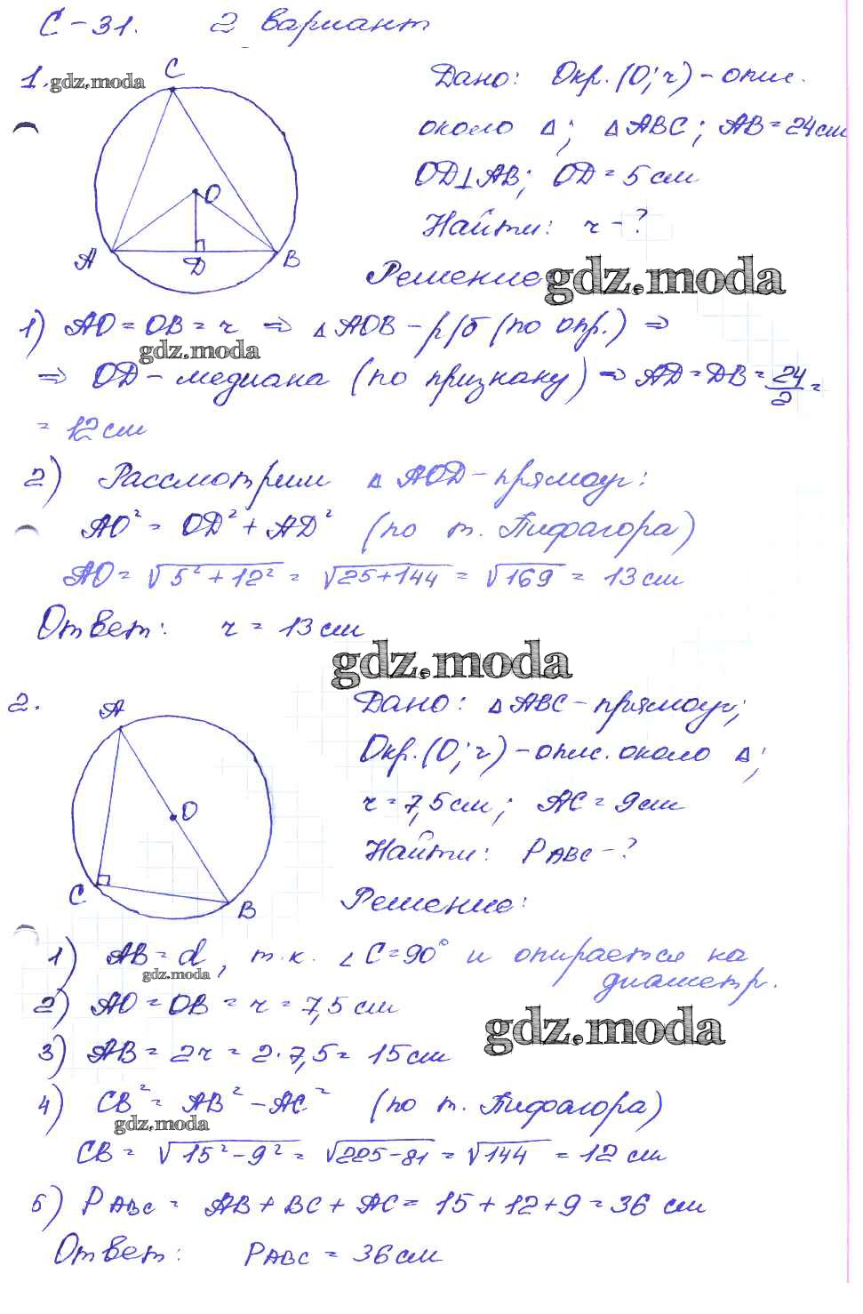 ГДЗ решение к заданию № вариант-2 Геометрия 8 класс Дидактические материалы Зив Б.Г. Просвещение 2016 ФГОС бесплатно на гдз.мода!