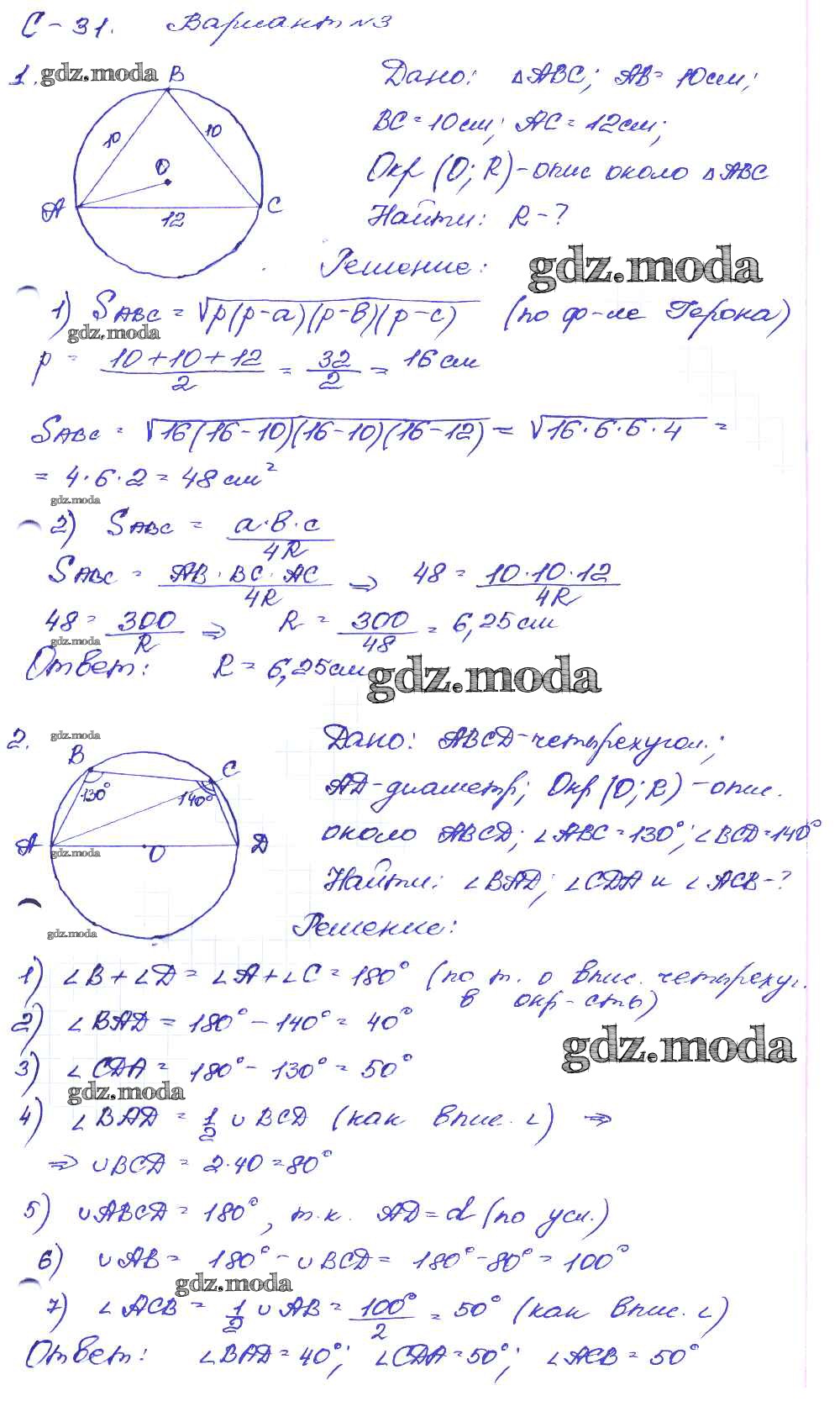 ГДЗ решение к заданию № вариант-3 Геометрия 8 класс Дидактические материалы Зив Б.Г. Просвещение 2016 ФГОС бесплатно на гдз.мода!