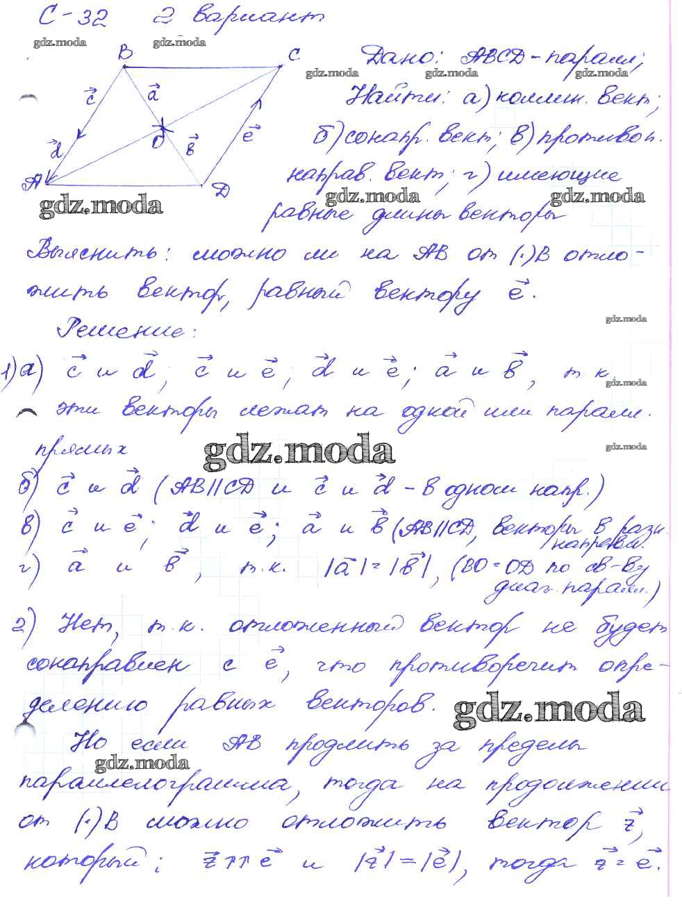 ГДЗ решение к заданию № вариант-2 Геометрия 8 класс Дидактические материалы Зив Б.Г. Просвещение 2016 ФГОС бесплатно на гдз.мода!