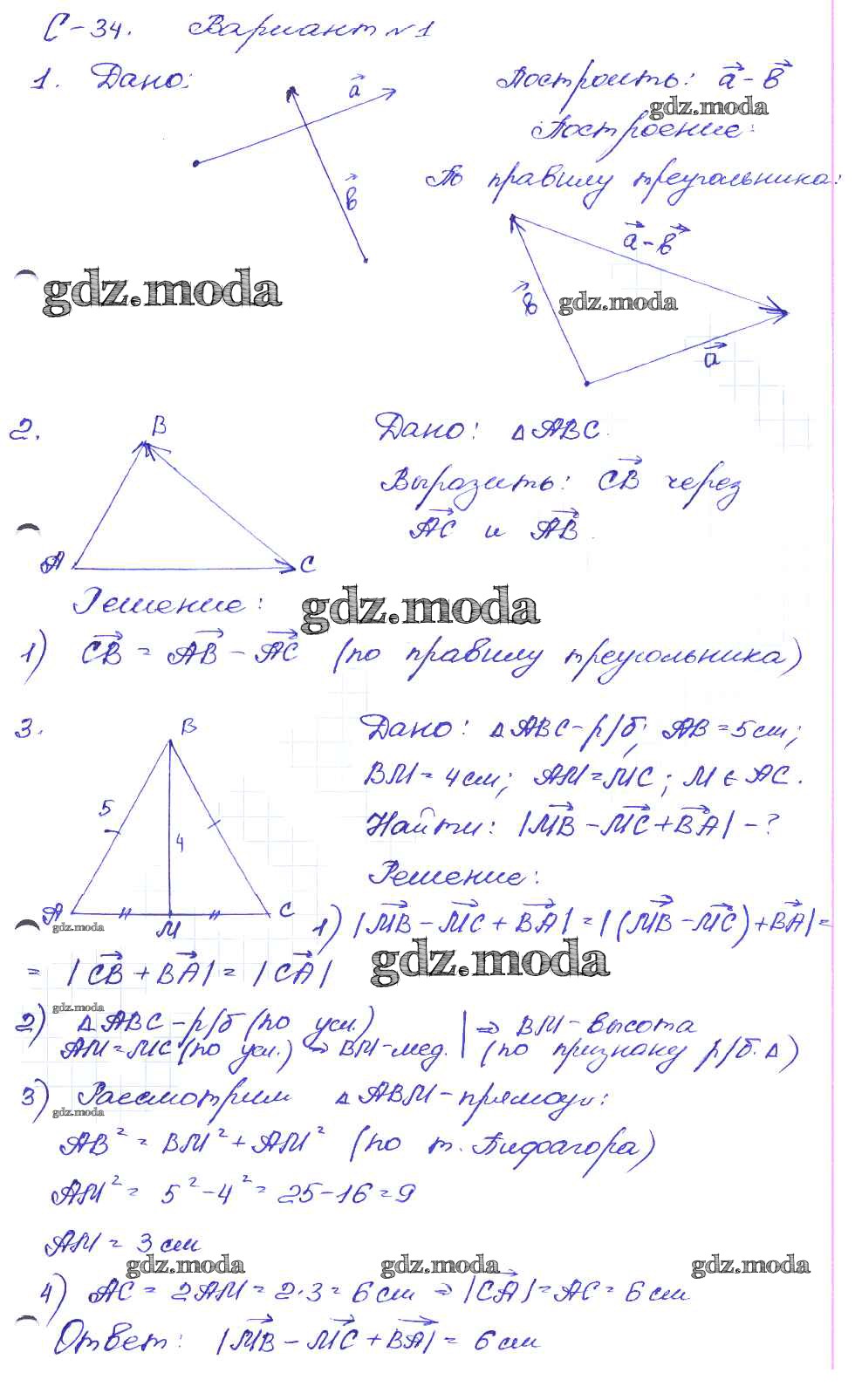 ГДЗ решение к заданию № вариант-1 Геометрия 8 класс Дидактические материалы Зив Б.Г. Просвещение 2016 ФГОС бесплатно на гдз.мода!