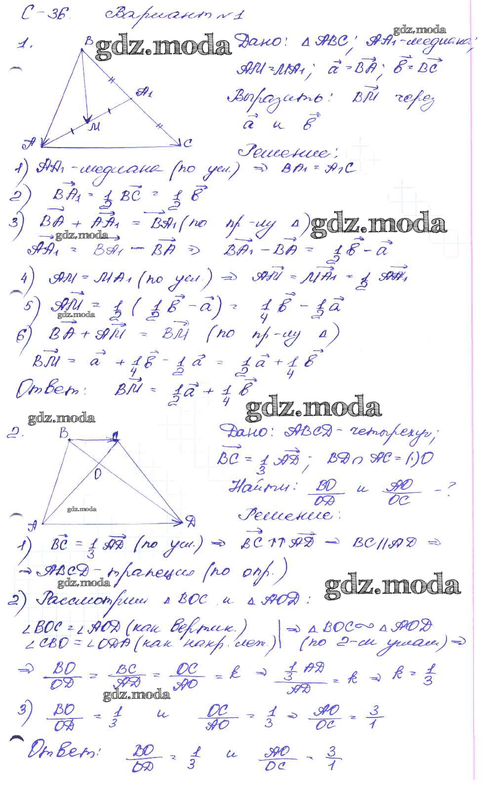 ОТВЕТ на задание № вариант-1 Дидактические материалы по Геометрии 8 класс Зив