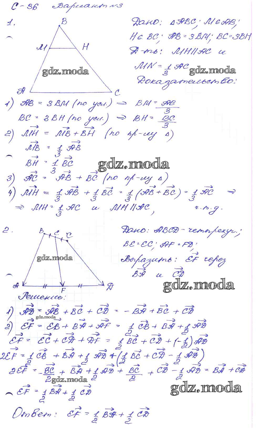 ГДЗ решение к заданию № вариант-3 Геометрия 8 класс Дидактические материалы Зив Б.Г. Просвещение 2016 ФГОС бесплатно на гдз.мода!