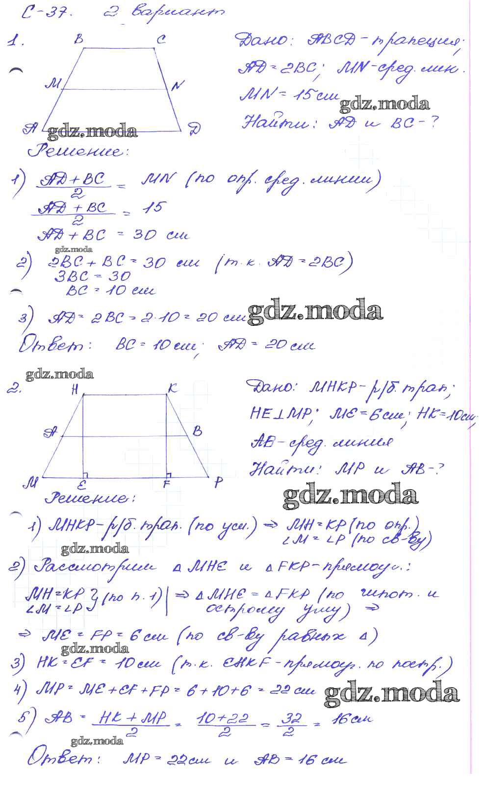ГДЗ решение к заданию № вариант-2 Геометрия 8 класс Дидактические материалы Зив Б.Г. Просвещение 2016 ФГОС бесплатно на гдз.мода!