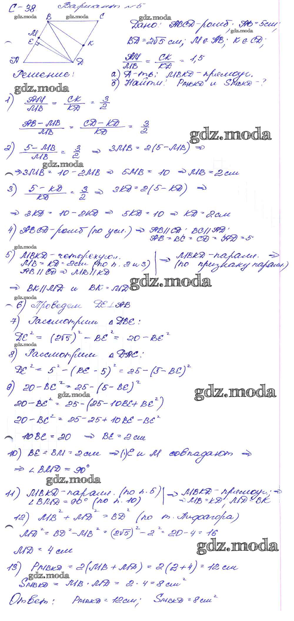 ГДЗ решение к заданию № вариант-5 Геометрия 8 класс Дидактические материалы Зив Б.Г. Просвещение 2016 ФГОС бесплатно на гдз.мода!
