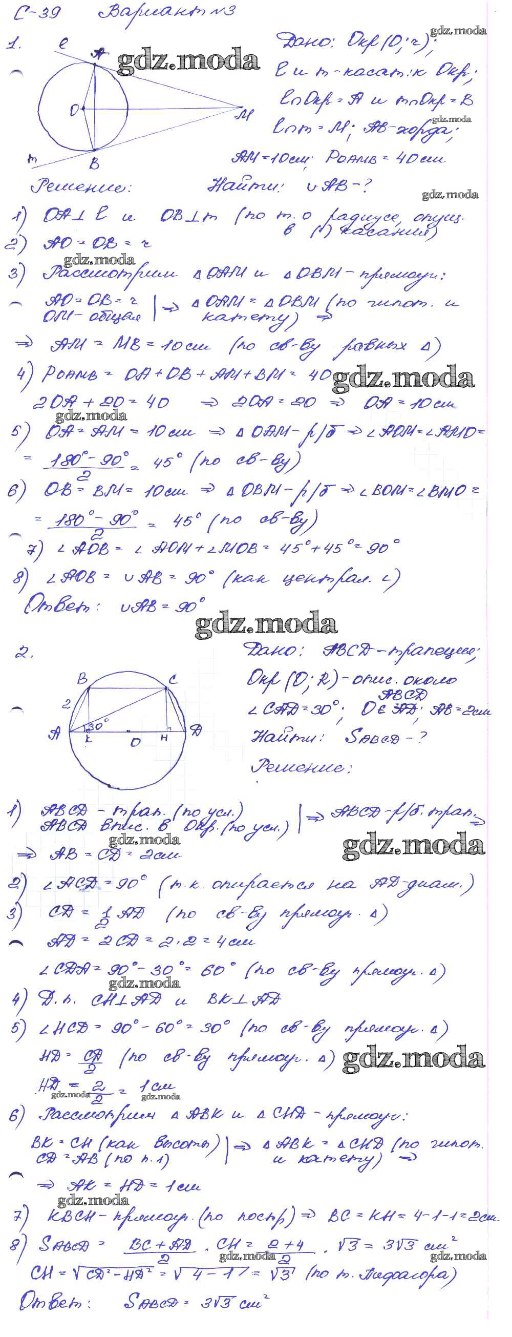 ГДЗ решение к заданию № вариант-3 Геометрия 8 класс Дидактические материалы Зив Б.Г. Просвещение 2016 ФГОС бесплатно на гдз.мода!