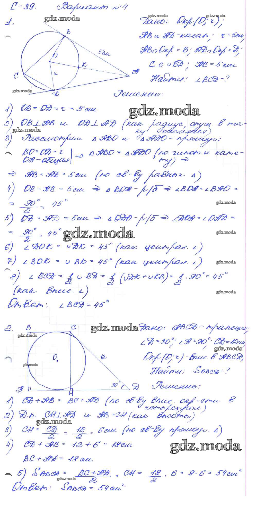 ГДЗ решение к заданию № вариант-4 Геометрия 8 класс Дидактические материалы Зив Б.Г. Просвещение 2016 ФГОС бесплатно на гдз.мода!