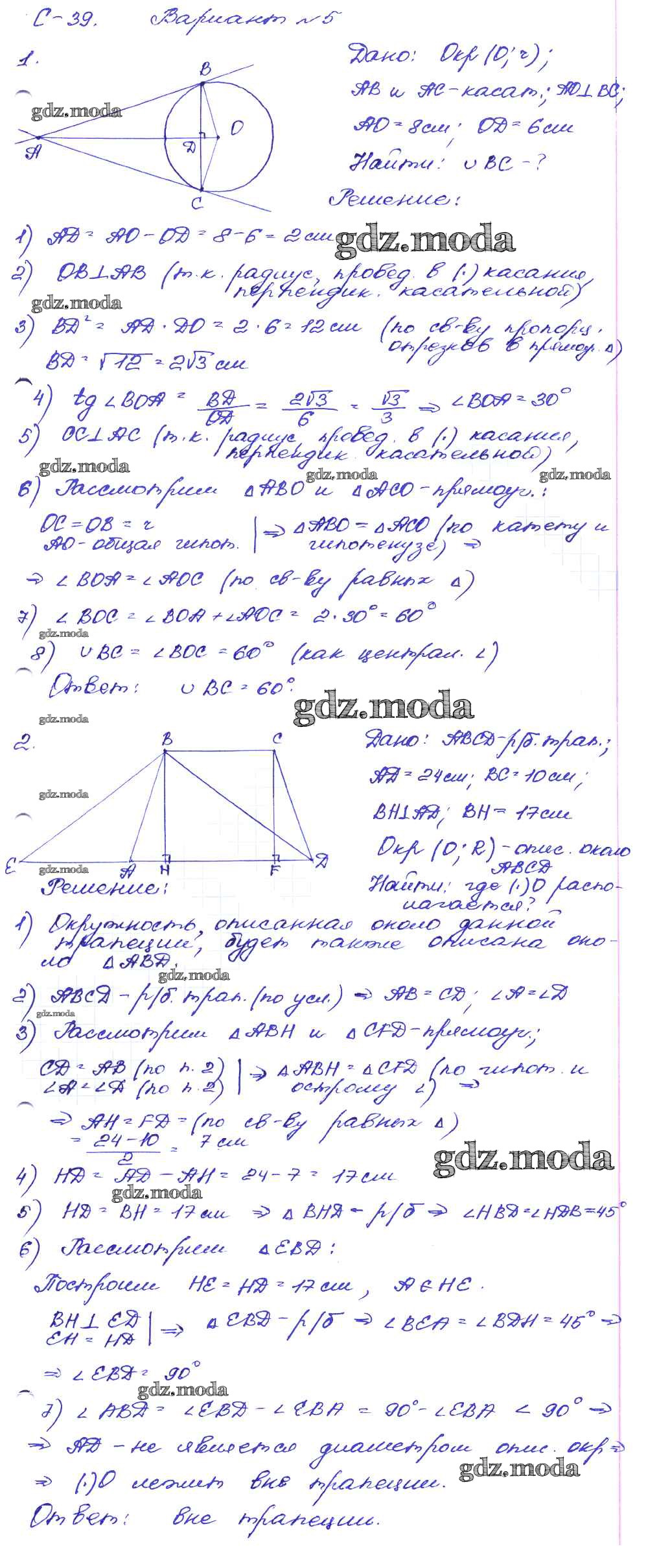 ГДЗ решение к заданию № вариант-5 Геометрия 8 класс Дидактические материалы Зив Б.Г. Просвещение 2016 ФГОС бесплатно на гдз.мода!