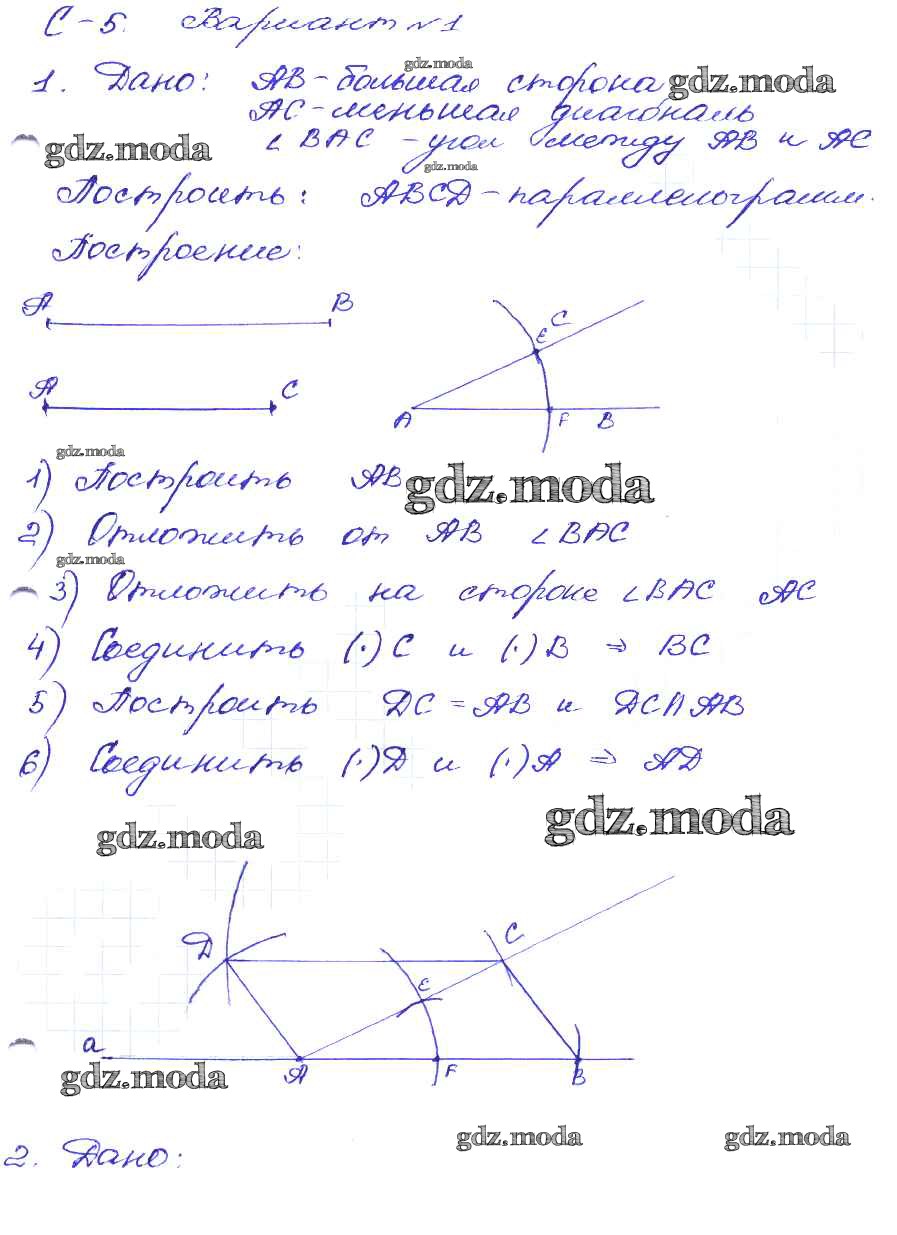 ГДЗ решение к заданию № вариант-1 Геометрия 8 класс Дидактические материалы Зив Б.Г. Просвещение 2016 ФГОС бесплатно на гдз.мода!