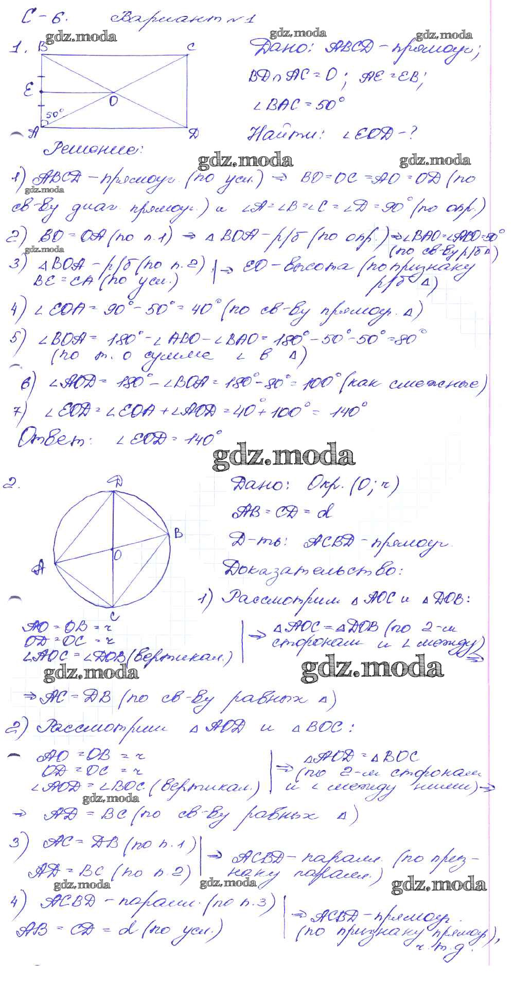 ГДЗ решение к заданию № вариант-1 Геометрия 8 класс Дидактические материалы Зив Б.Г. Просвещение 2016 ФГОС бесплатно на гдз.мода!