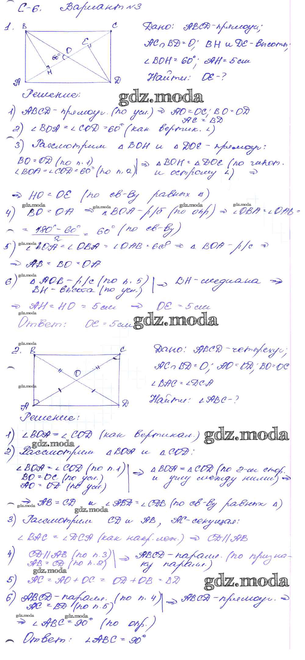ГДЗ решение к заданию № вариант-3 Геометрия 8 класс Дидактические материалы Зив Б.Г. Просвещение 2016 ФГОС бесплатно на гдз.мода!