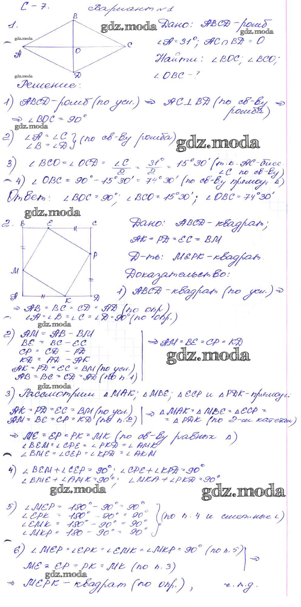 ГДЗ решение к заданию № вариант-1 Геометрия 8 класс Дидактические материалы Зив Б.Г. Просвещение 2016 ФГОС бесплатно на гдз.мода!