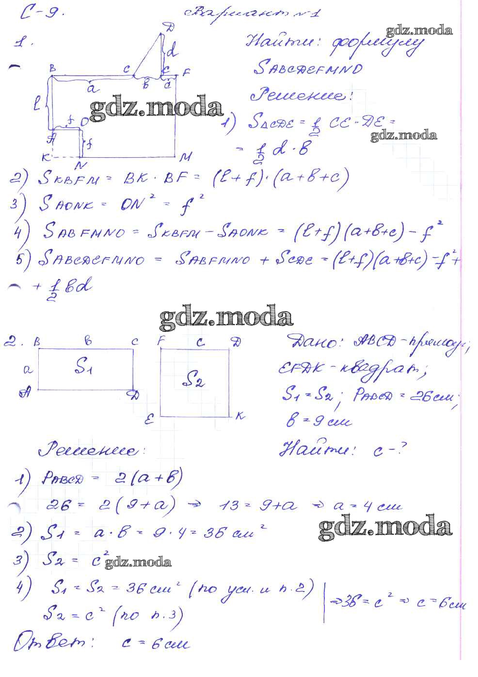 ГДЗ решение к заданию № вариант-1 Геометрия 8 класс Дидактические материалы Зив Б.Г. Просвещение 2016 ФГОС бесплатно на гдз.мода!