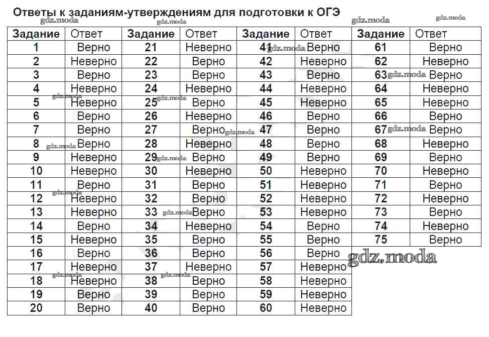 ответы для подготовки к ОГЭ