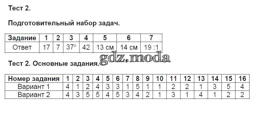 ОТВЕТ на задание № Тест №2 Тесты по Геометрии 8 класс Звавич УМК