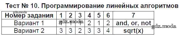 ГДЗ решение к заданию № Тест №10. Программирование линейных алгоритмов Информатика 8 класс контрольно-измерительные материалы Масленикова О.Н. ВАКО 2017 ФГОС бесплатно на гдз.мода!