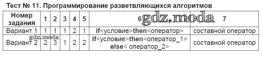 ГДЗ решение к заданию № Тест №11. Программирование разветвляющихся алгоритмов Информатика 8 класс контрольно-измерительные материалы Масленикова О.Н. ВАКО 2017 ФГОС бесплатно на гдз.мода!