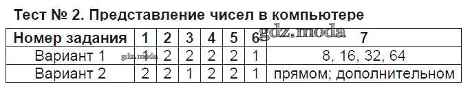 ГДЗ решение к заданию № Тест №2. Представление чисел в компьютере Информатика 8 класс контрольно-измерительные материалы Масленикова О.Н. ВАКО 2017 ФГОС бесплатно на гдз.мода!