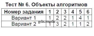 ОТВЕТ на задание № Тест №6. Объекты алгоритмов Контрольно-измерительные материалы (КИМ) по Информатике 8 класс Масленикова