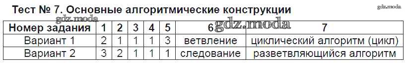 ОТВЕТ на задание № Тест №7. Основные алгоритмические конструкции Контрольно-измерительные материалы (КИМ) по Информатике 8 класс Масленикова