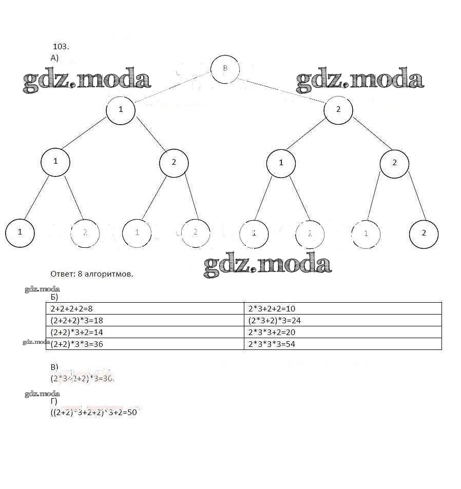 ГДЗ решение к заданию № 103 Информатика 8 класс рабочая тетрадь Босова Л.Л. Бином 2017 Часть 1, Часть 2 ФГОС бесплатно на гдз.мода!