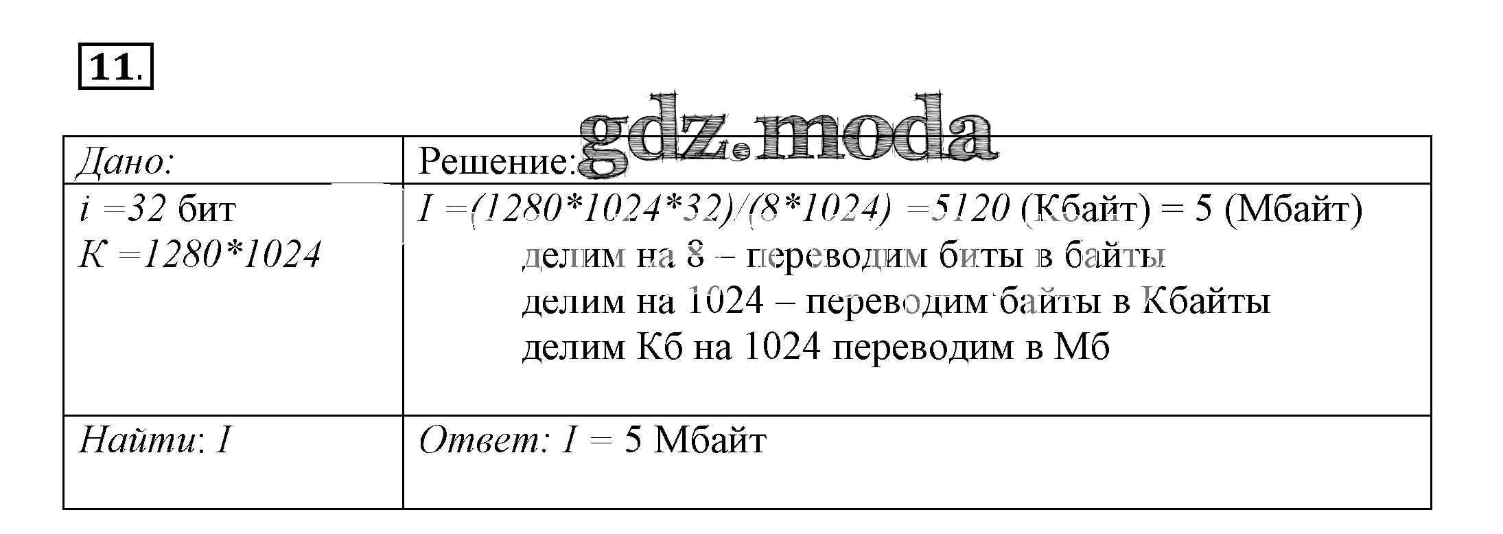 ГДЗ решение к заданию № 11 Информатика 8 класс рабочая тетрадь Босова Л.Л. Бином 2017 Часть 1, Часть 2 ФГОС бесплатно на гдз.мода!
