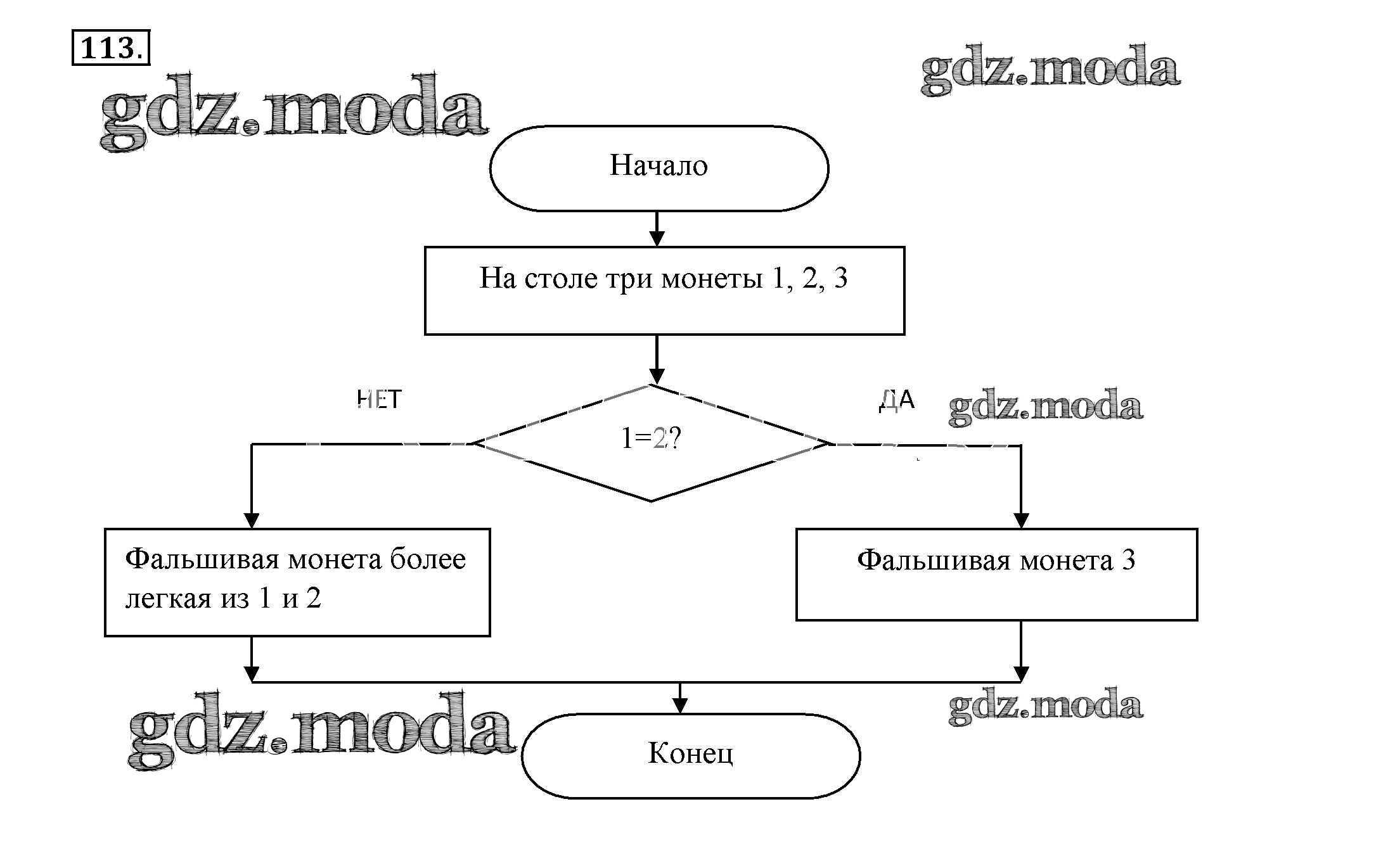 ГДЗ решение к заданию № 113 Информатика 8 класс рабочая тетрадь Босова Л.Л. Бином 2017 Часть 1, Часть 2 ФГОС бесплатно на гдз.мода!