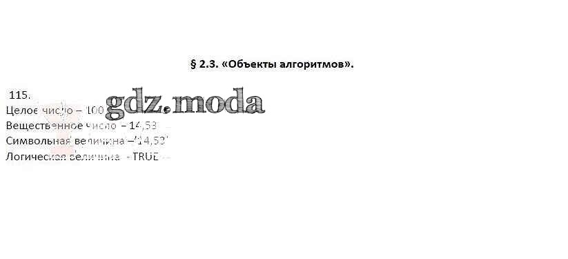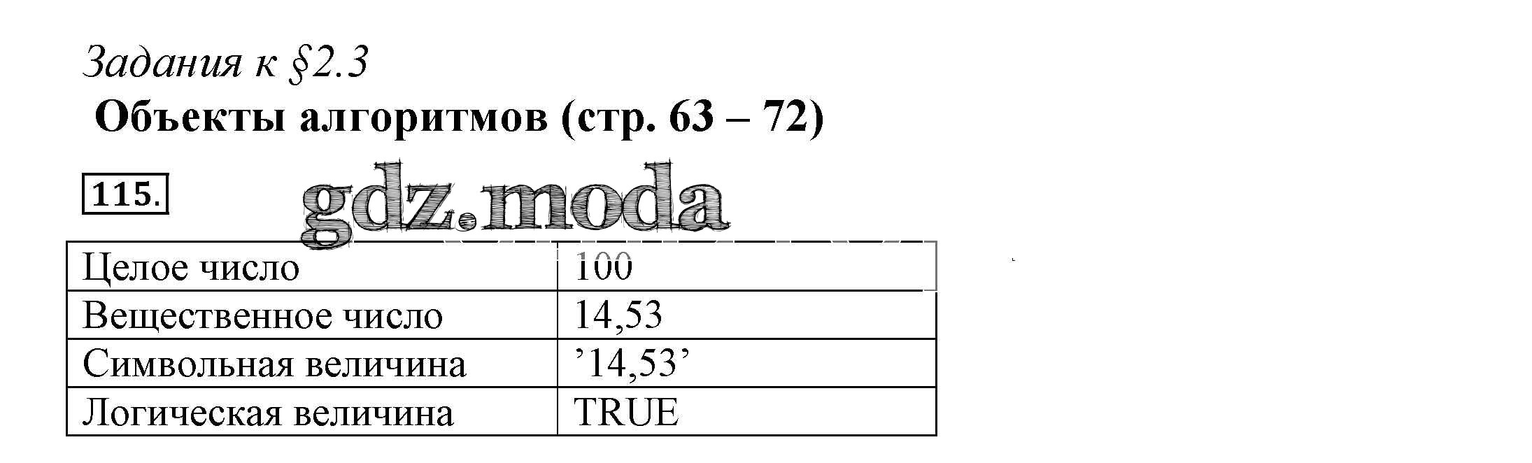 ГДЗ решение к заданию № 115 Информатика 8 класс рабочая тетрадь Босова Л.Л. Бином 2017 Часть 1, Часть 2 ФГОС бесплатно на гдз.мода!
