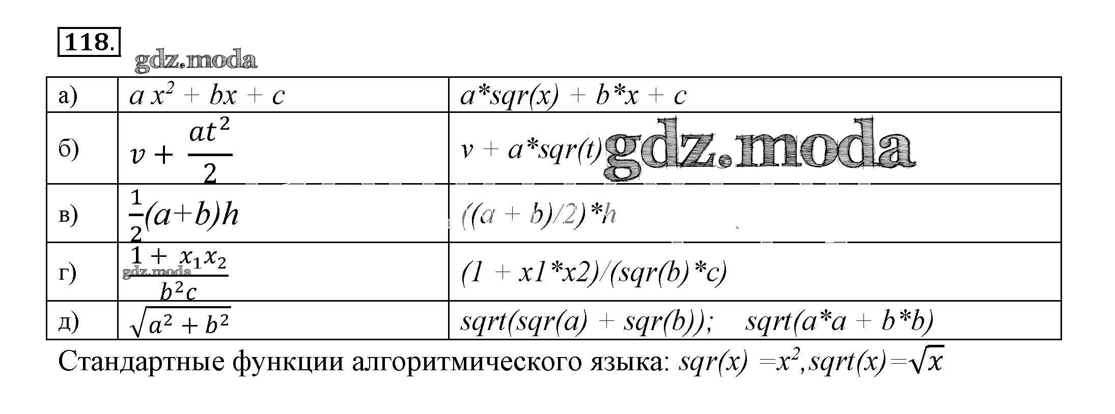 ГДЗ решение к заданию № 118 Информатика 8 класс рабочая тетрадь Босова Л.Л. Бином 2017 Часть 1, Часть 2 ФГОС бесплатно на гдз.мода!