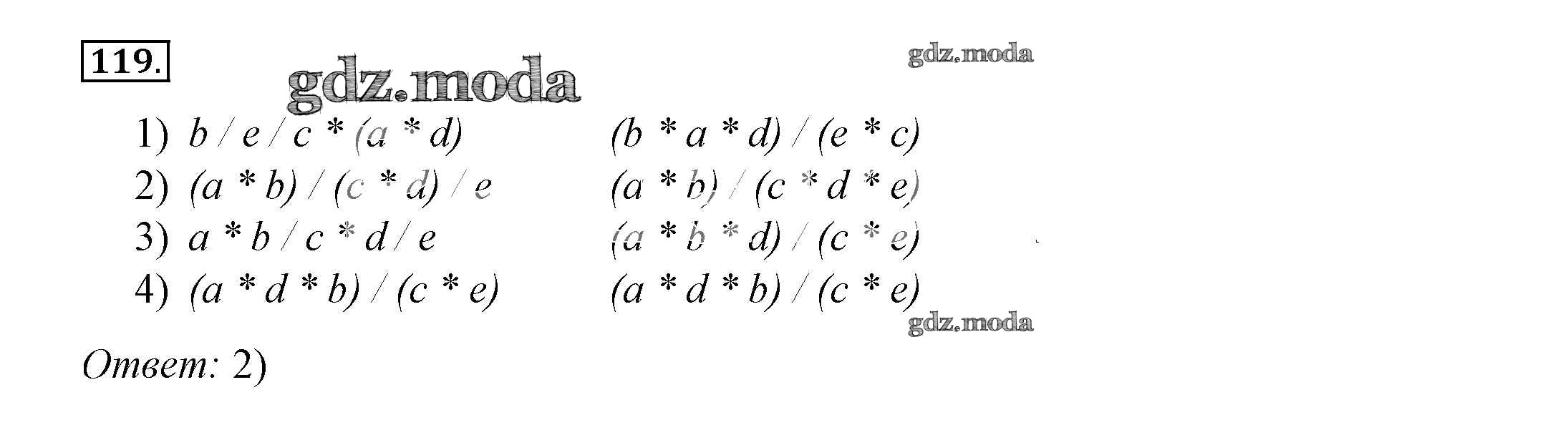 ГДЗ решение к заданию № 119 Информатика 8 класс рабочая тетрадь Босова Л.Л. Бином 2017 Часть 1, Часть 2 ФГОС бесплатно на гдз.мода!