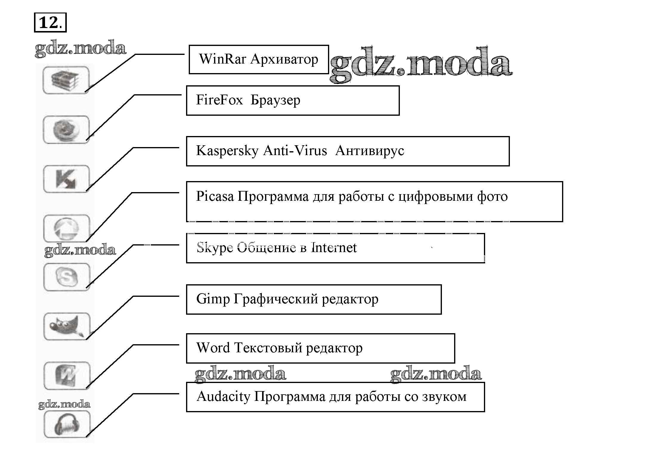 ГДЗ решение к заданию № 12 Информатика 8 класс рабочая тетрадь Босова Л.Л. Бином 2017 Часть 1, Часть 2 ФГОС бесплатно на гдз.мода!