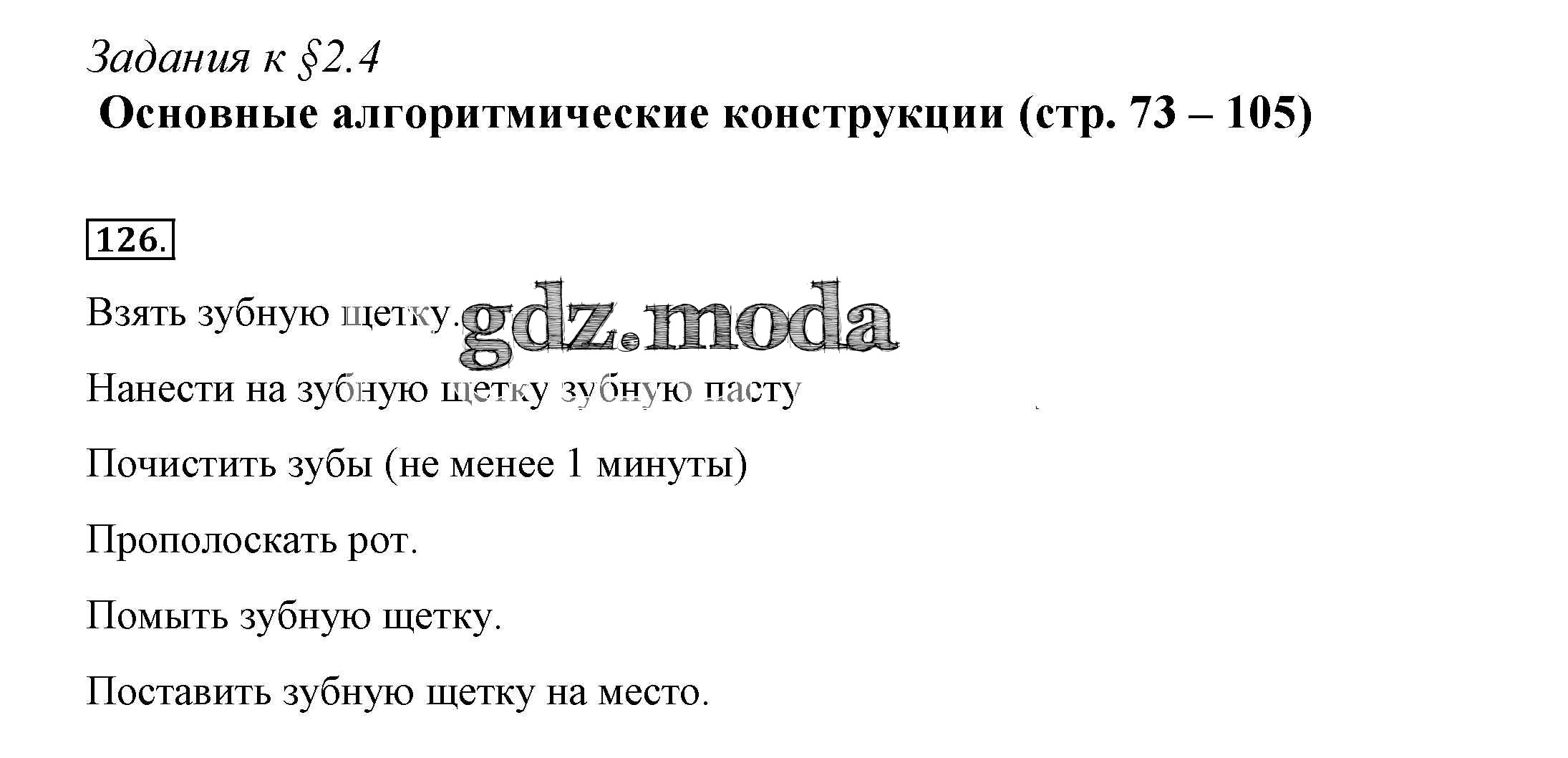 ГДЗ решение к заданию № 126 Информатика 8 класс рабочая тетрадь Босова Л.Л. Бином 2017 Часть 1, Часть 2 ФГОС бесплатно на гдз.мода!