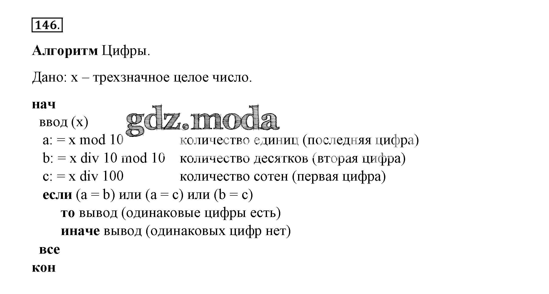 ГДЗ решение к заданию № 146 Информатика 8 класс рабочая тетрадь Босова Л.Л. Бином 2017 Часть 1, Часть 2 ФГОС бесплатно на гдз.мода!