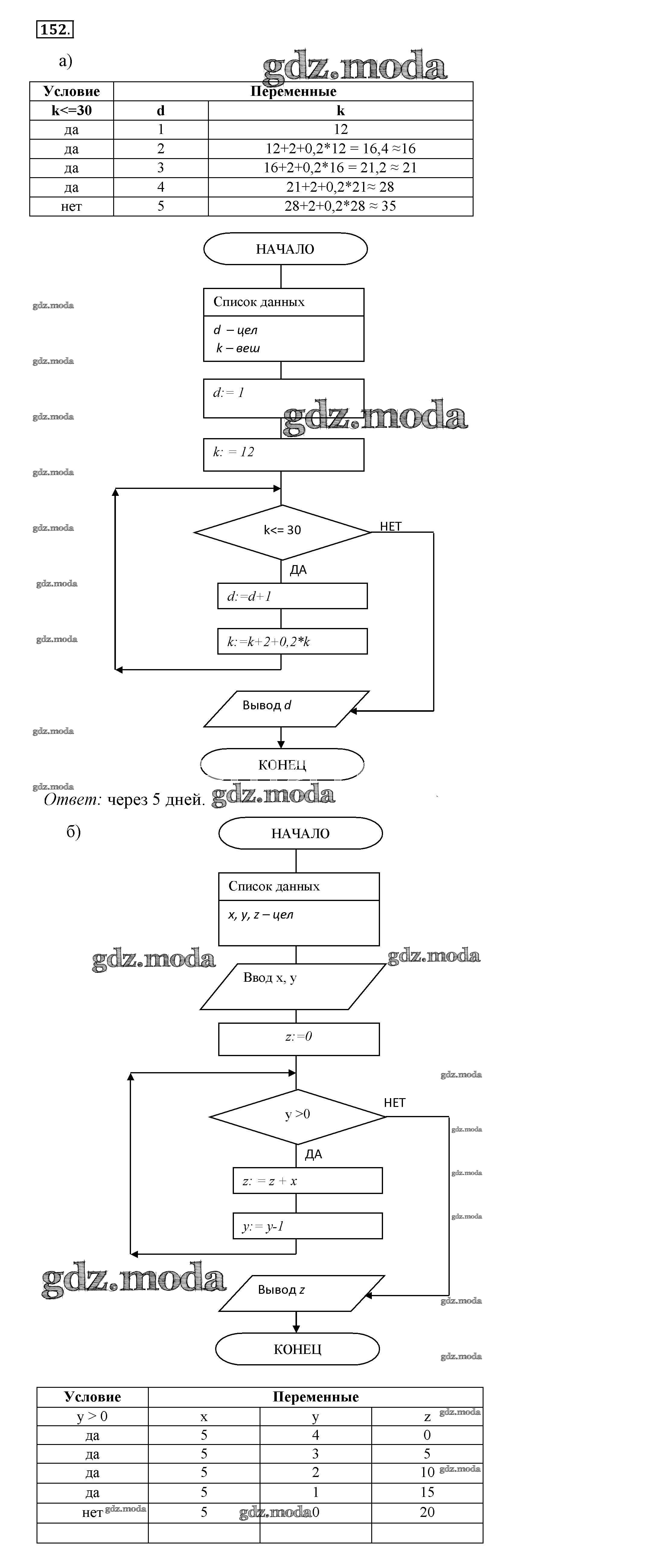 ОТВЕТ на задание № 152 Рабочая тетрадь по Информатике 8 класс Босова