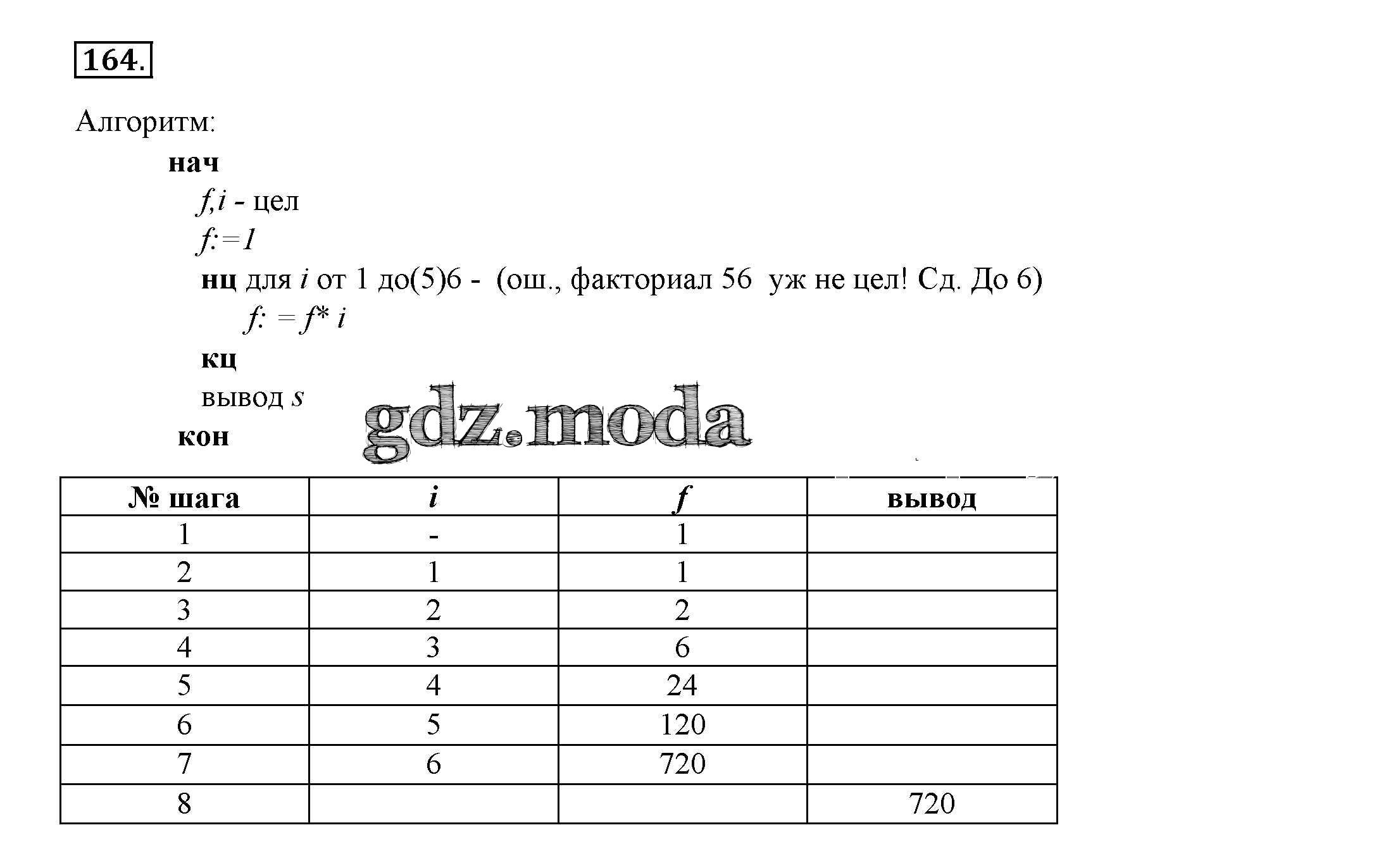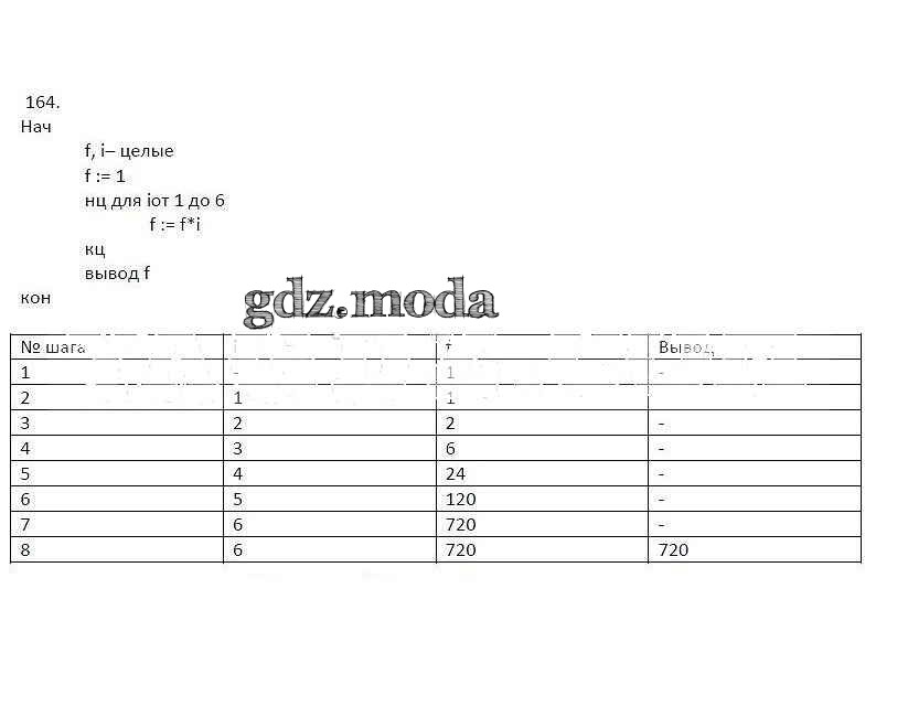 ГДЗ решение к заданию № 164 Информатика 8 класс рабочая тетрадь Босова Л.Л. Бином 2017 Часть 1, Часть 2 ФГОС бесплатно на гдз.мода!