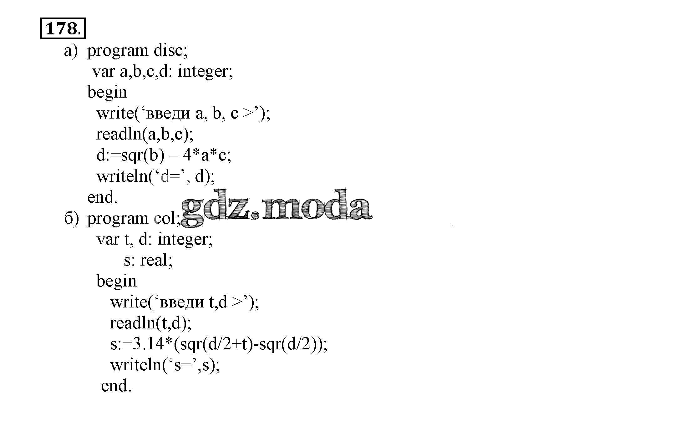 ГДЗ решение к заданию № 178 Информатика 8 класс рабочая тетрадь Босова Л.Л. Бином 2017 Часть 1, Часть 2 ФГОС бесплатно на гдз.мода!