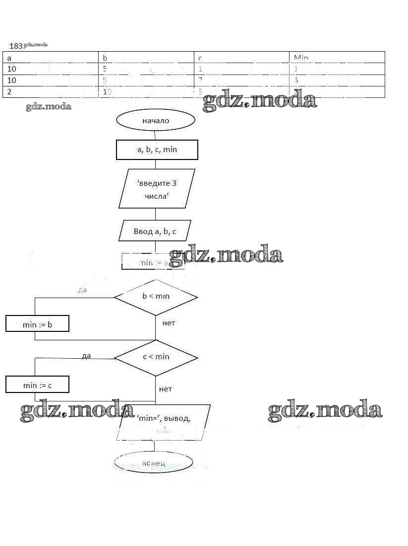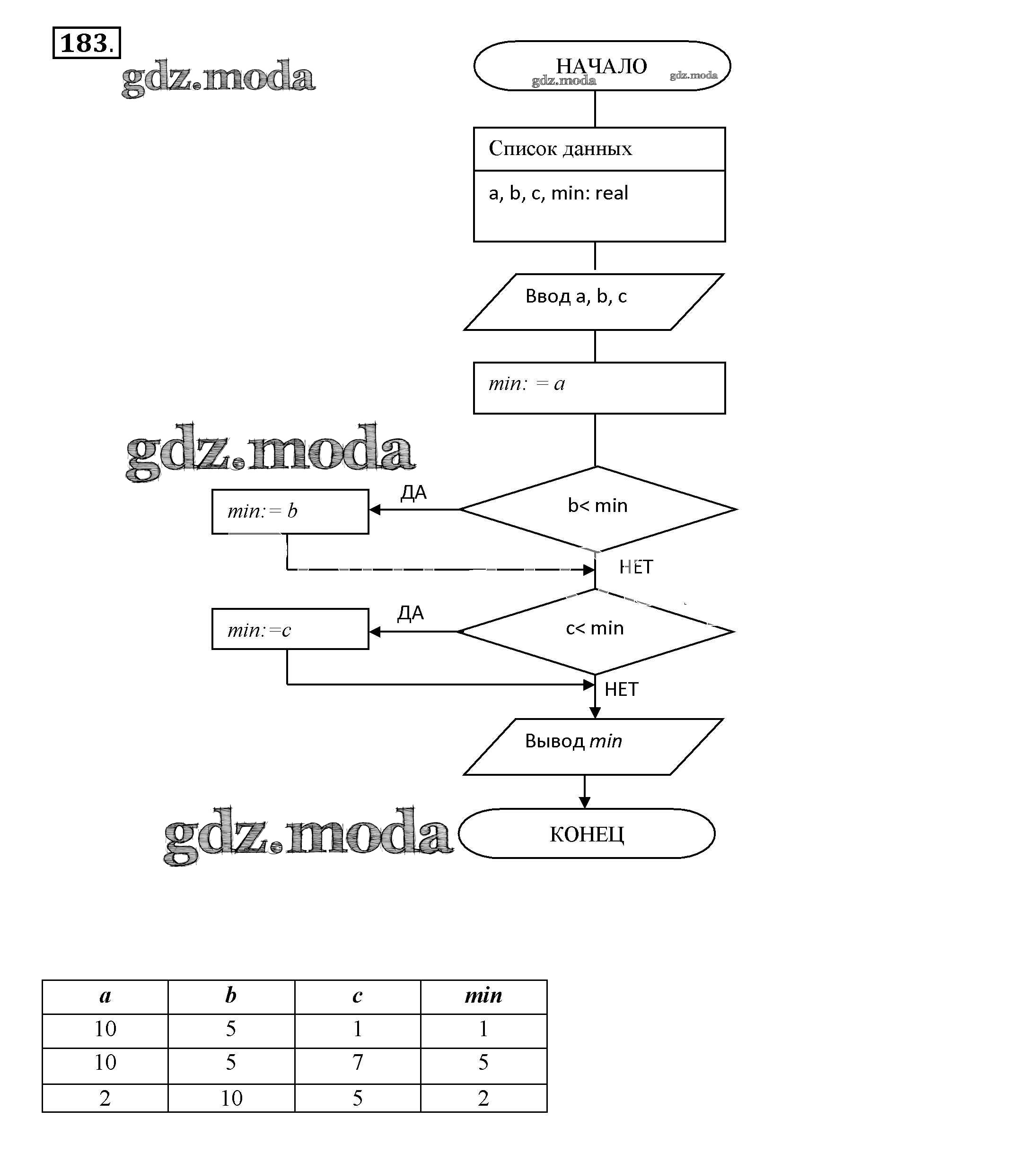 ГДЗ решение к заданию № 183 Информатика 8 класс рабочая тетрадь Босова Л.Л. Бином 2017 Часть 1, Часть 2 ФГОС бесплатно на гдз.мода!