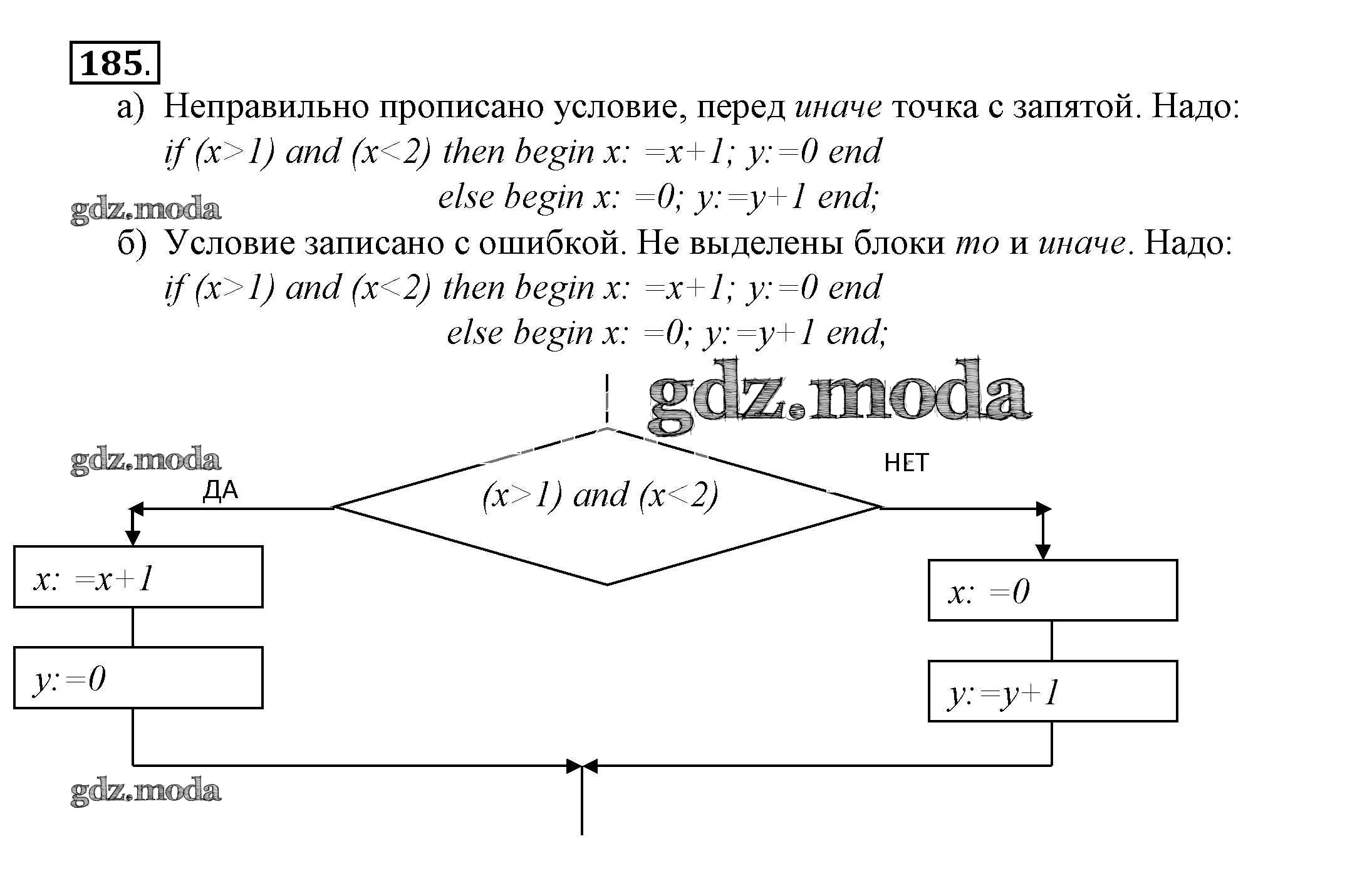 ГДЗ решение к заданию № 185 Информатика 8 класс рабочая тетрадь Босова Л.Л. Бином 2017 Часть 1, Часть 2 ФГОС бесплатно на гдз.мода!